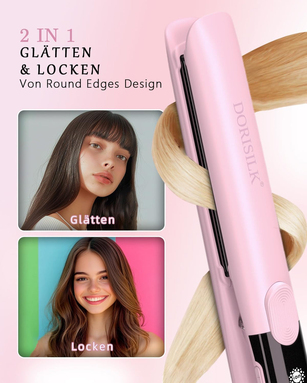 Mini Glätteisen, 2 in 1 Kleins Glätteisen, Haarglätter mit Ionen Technologie & 4 Temperatureinstellu