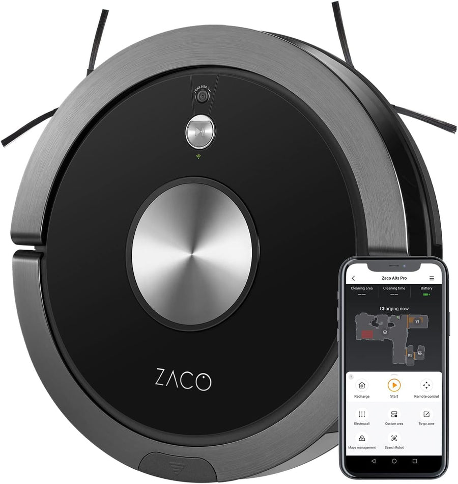 ZACO A9sPro Saugroboter mit Wischfunktion, App & Alexa, 7,6 cm flach, Staubsauger Roboter mit Raumka