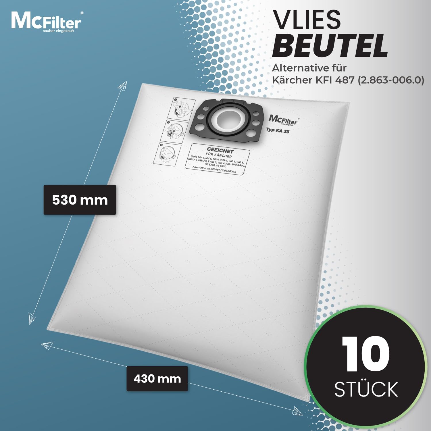 - Lieferumfang: 10 Vliesfilterbeutel, 1 Flachfaltenfilter als Alternative für Kärcher Filter 2.863-005.0