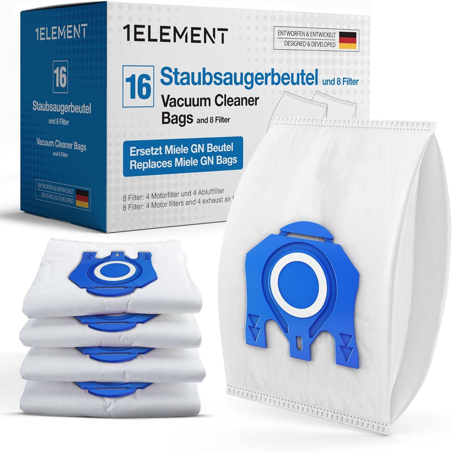 - 16er Maxi-Set: Dieses Set enthält 16 hochwertige Staubsaugerbeutel, 4 Motorschutzfilter und 4 Abluftfilter, um die optimale Passform für Ihren Miele Staubsauger der GN-Serie, Classic C1, Complete C2/C3 und andere Modelle zu gewährleisten.