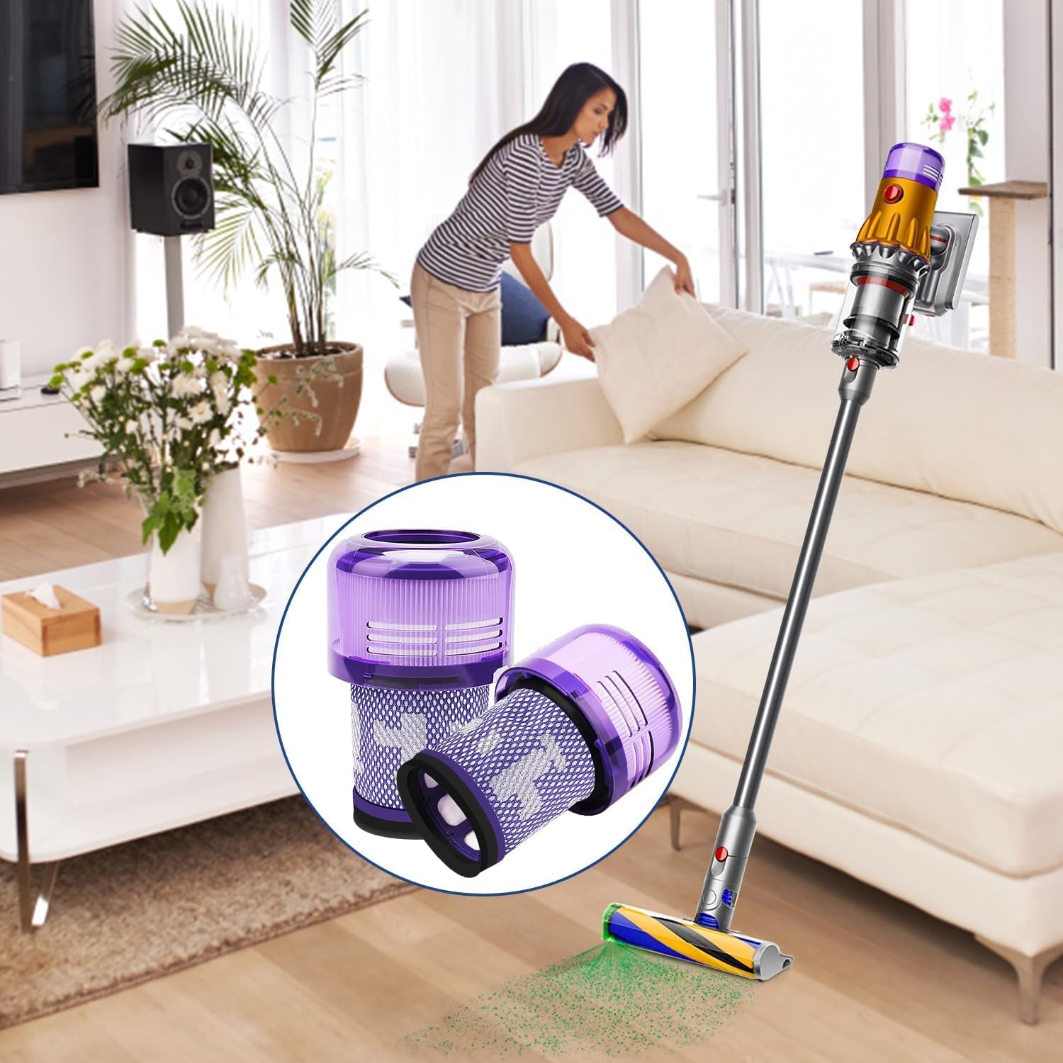 - [Gesunder Lebensstil]: Die Ersatzfilter für Dyson Filter V12 haben ein Zwei-in-Eins-Design, um Müll, Schmutz und Tierhaare in Ecken und Kanten einzufangen, Hepa-Filter für Dyson V12 Series kann 99.97% Staub und Schmutz, halten Ihr Haus und die