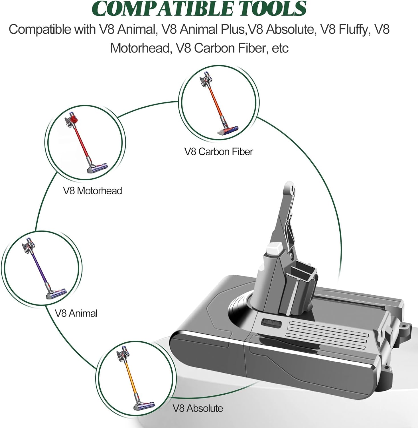 - 【Kompatible Modelle】Kompatibel mit Staubsaugern der Dyson V8-Serie. Wie kompatibel mit Dyson V8 Animal, V8 Animal Exclusive, V8 Animal Plus, V8 Absolute, V8 Absolute Plus, V8 Fluffy, V8 Motorhead, V8 Carbon Fiber, SV10 Animal Pro vacuum cleaner, usw. (Eine vollständige Liste der kompatiblen Modelle finden Sie in der Produktbeschreibung.)
