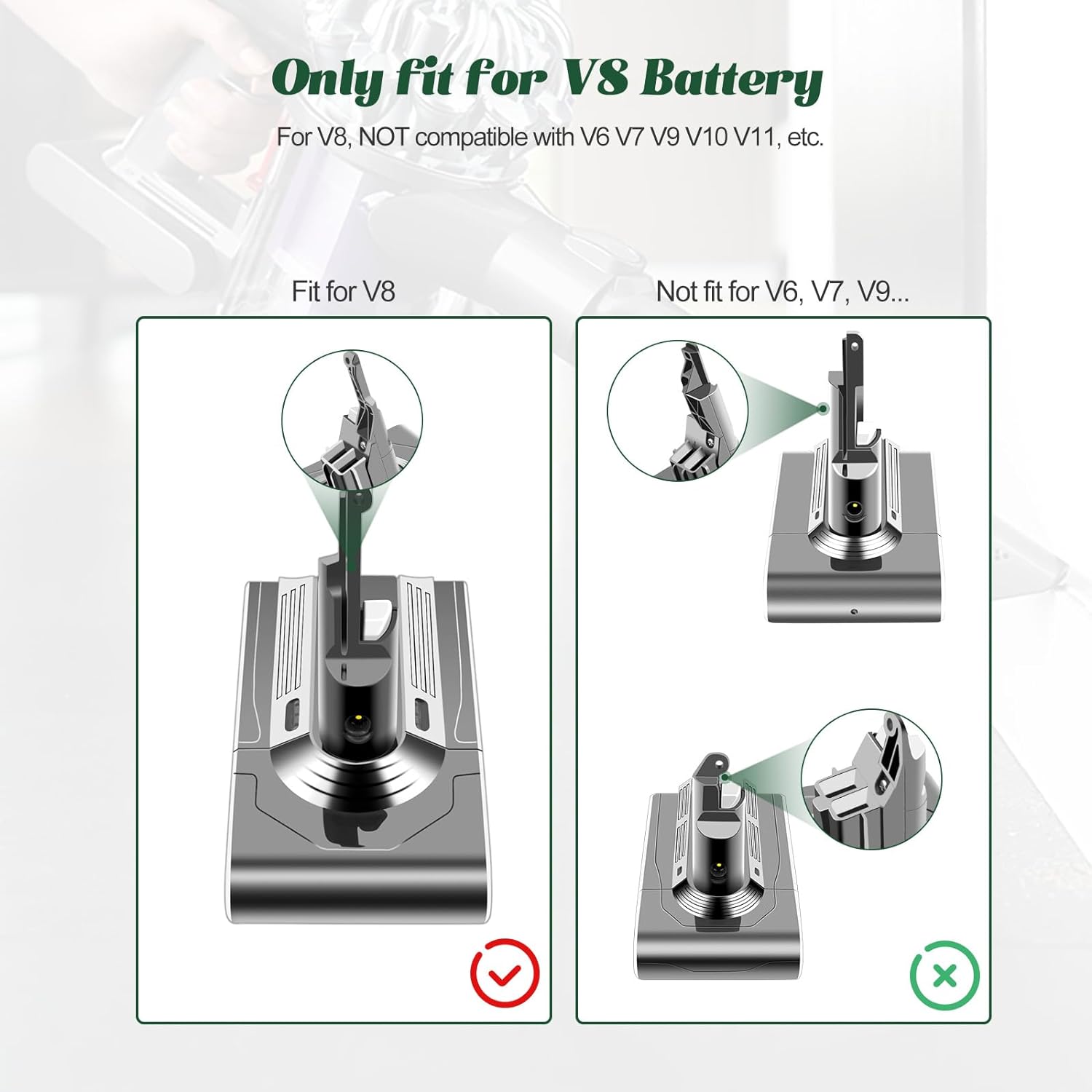 - 【LED-Anzeige】Für Dyson V8 Akku Staubsauger. Mit der LED-Anzeige kann der Status des Akkus angezeigt werden. Leicht für Sie zu wissen, ob der Akku vollständig geladen ist. Die Leistung ist so gut wie der original Dyson V8 Akku und hat die gleiche Grösse wie das Original und passt zum Dyson V8 Ladegerät und Wandladegerät.