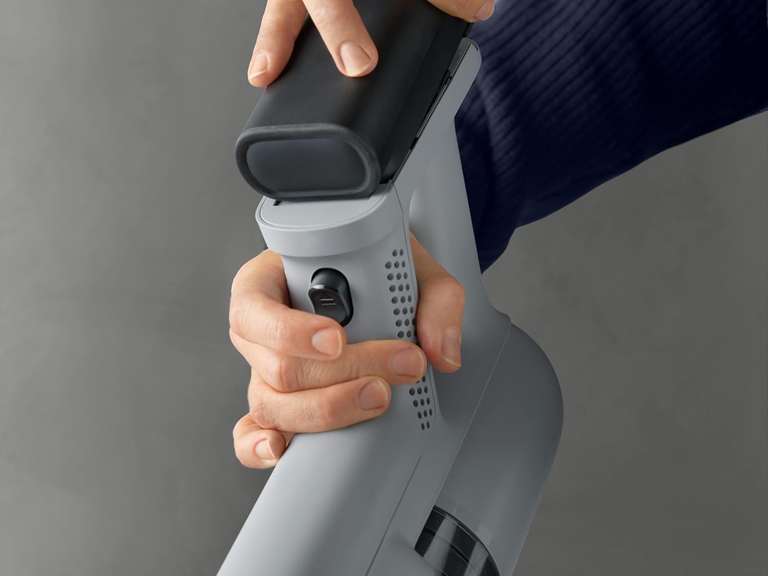 - Einfacher Austausch: Der Akku kann einfach und schnell mit einem Klick in den Staubsauger eingesetzt werden