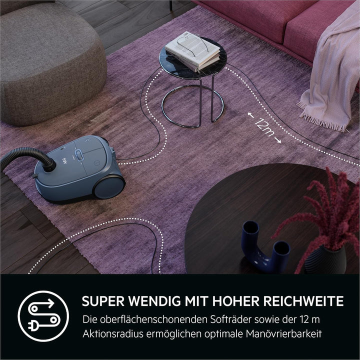 - MÜHELOSE REINIGUNG - Mit dem Fuss bedienbar - oberflächenschonende Softräder - 12 m Aktionsradius - Einfache Anpassung der Saugleistung für eine effiziente Reinigung ohne unnötige Unterbrechungen