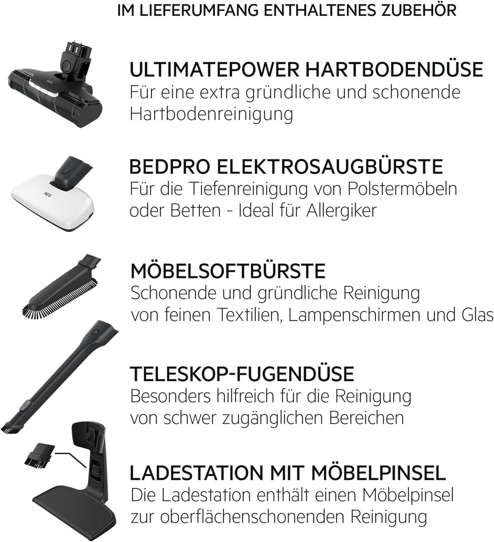 - Flexibilität: Automatische Anpassung der Saugleistung an die Oberflächen - Leistungsstarke Spezialdüsen mit LED Frontlicht für eine gründliche Boden-, Polster- und Möbelreinigung