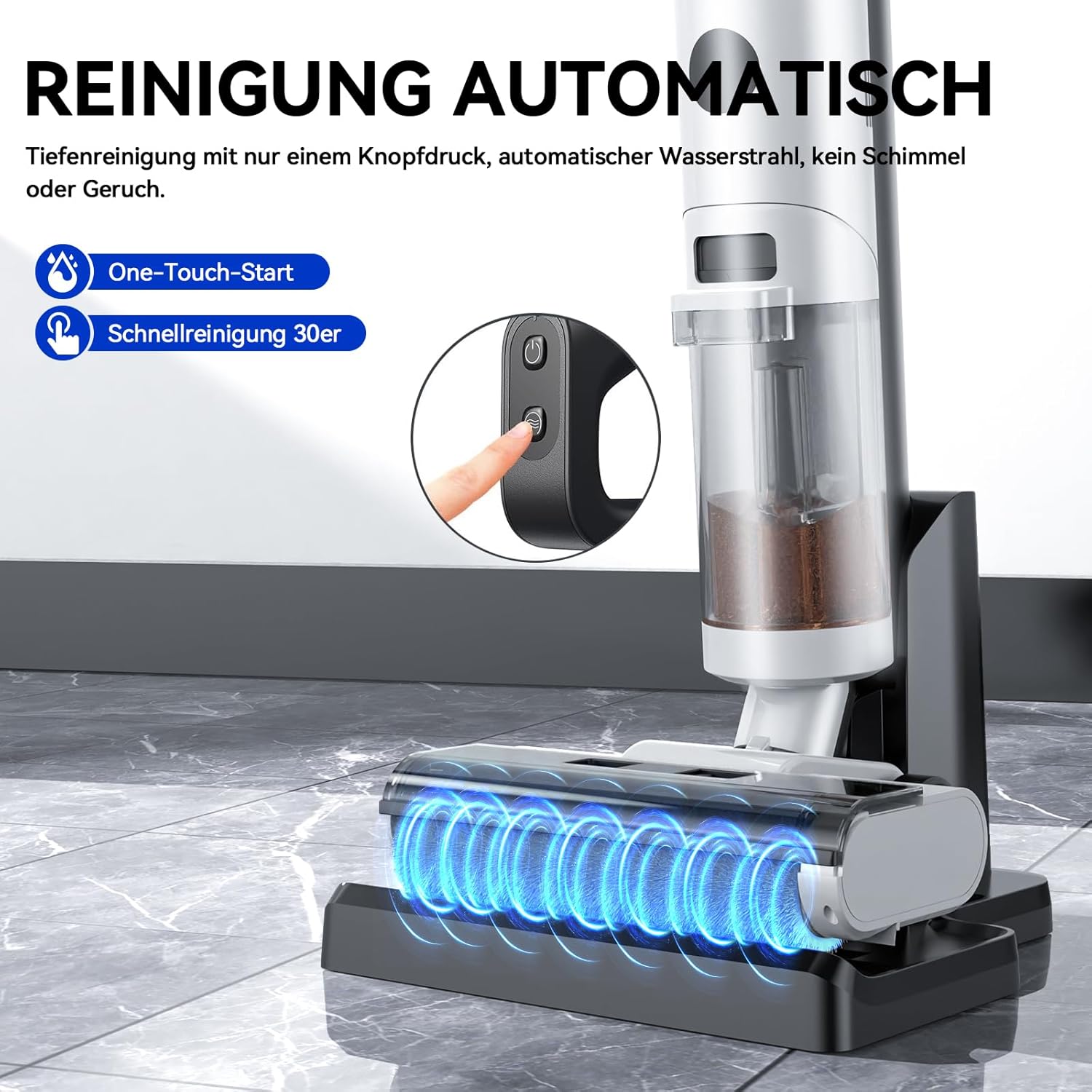 - Selbstreinigung in einem Schritt: Nach der Raumreinigung genügt ein Klick auf die automatische Reinigungswalzenbürste, um Schmutz zu vermeiden. Die schnelle Selbstreinigung in nur 35 Sekunden spart Wartezeit und reduziert den Wasserverbrauch für