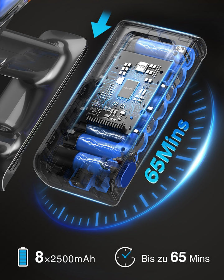 - 【65 Minuten Lange Akkulaufzeit】Dieser Staubsauger Kabellos verwendet 8x2500 mAh herausnehmbare Akkus mit grosser Kapazität. Nachdem der Staubsauger vollständig aufgeladen ist (4H), kann er 65 Minuten lang bei minimaler Saugleistung arbeiten und 30