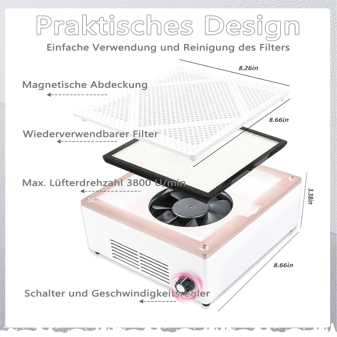 - 【Praktisch und einfach zu verwenden】 Verbessern Sie Ihre Nagelpflegeroutine mit dem Staubabscheider für den Nagelstaubabscheider von ANGNYA. Intelligentes, platzsparendes Design mit beispielloser Partikel- und Staubabsaugung in der Luft, das Ihnen