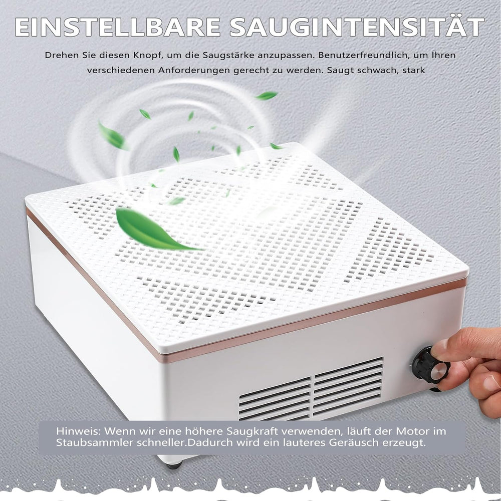 - 【Staubsammler für Nagelventilatoren mit einstellbarer Saugkraft】 Dieser Nagelstaubsauger verfügt über einen Geschwindigkeitsregler, mit dem Sie niedrige und hohe Saugkraft einstellen können. So können Sie die Saugkraft des Nagelventilators