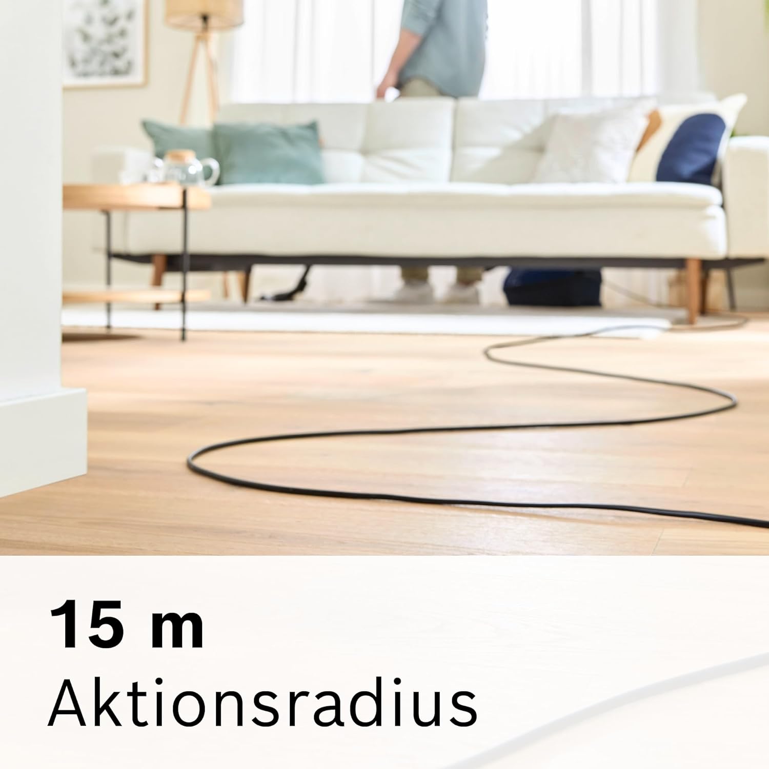 - Mehr Flexibilität dank 15 m Aktionsradius: weniger Steckdosenwechsel und grössere Flächen ohne Unterbrechung saugen dank extralangem Kabel