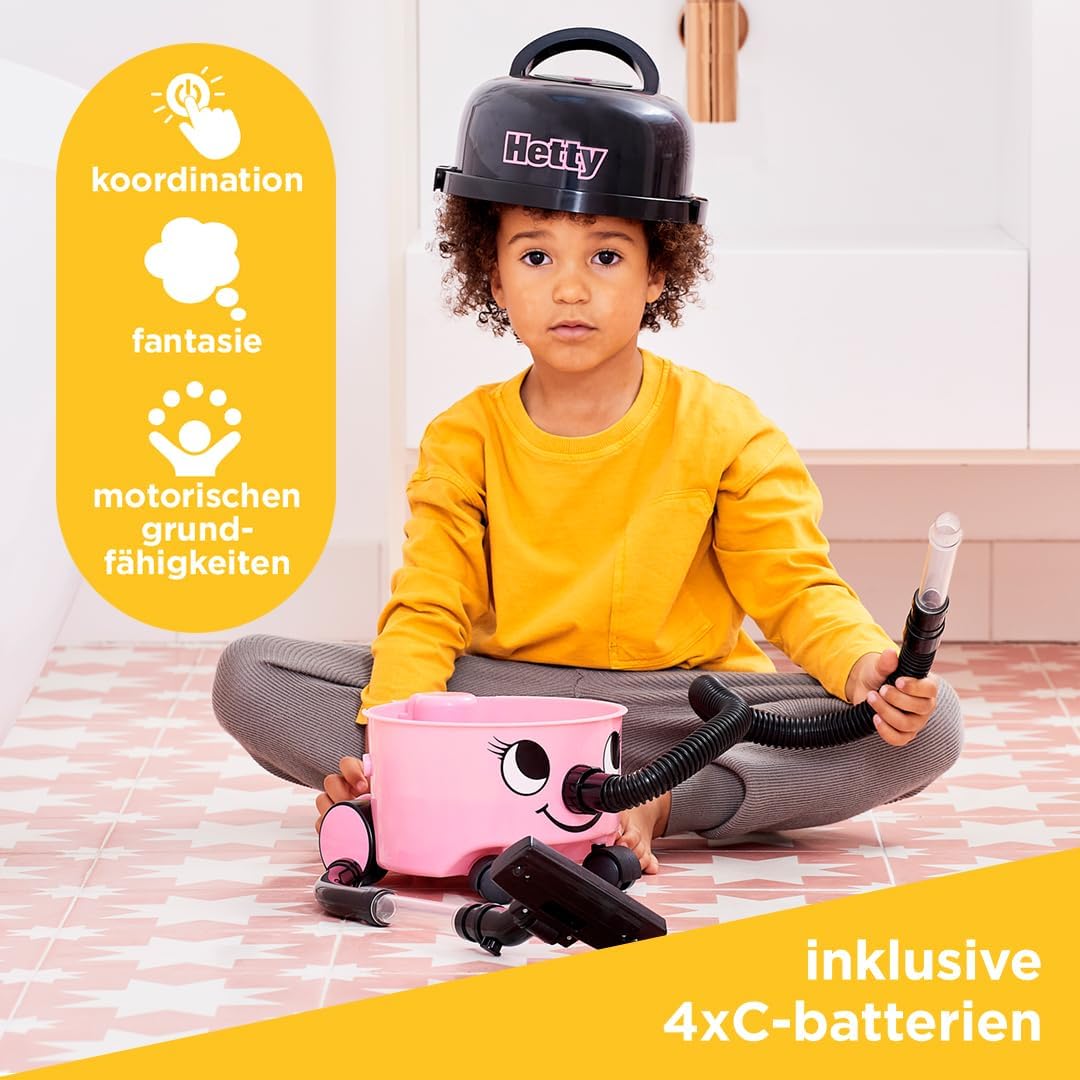- INKLUSIVE: Spielzeugstaubsauger der Marke Hetty mit Saugfunktion, herausnehmbarem Schmutzbehälter und Düsenzubehör