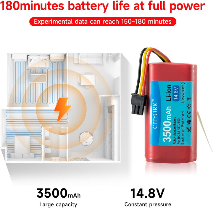 - 【Einfach zu installieren】: Installieren Sie es in 2 Minuten - entfernen Sie einfach die beiden Schrauben auf der Unterseite, entfernen Sie den Batteriestecker und schliessen Sie den neuen an, dann beleben Sie Ihren Roboter wieder.