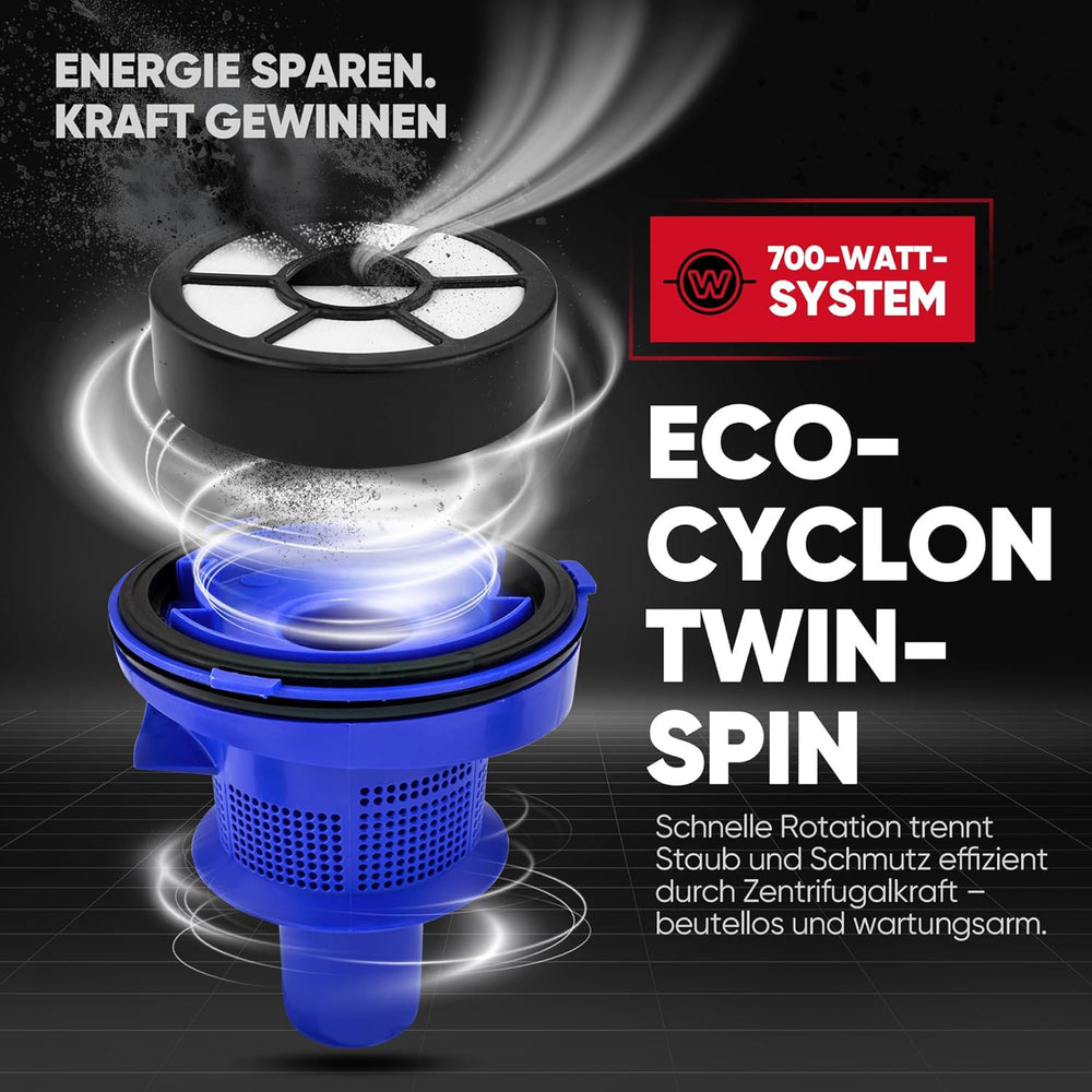- Der Staubsauger mit Eco-Cyclon Twin-Spin-Technologie mit energiesparenden 700 Watt sorgt für eine gründliche Reinigung Ihres Zuhauses und spart dabei Energie