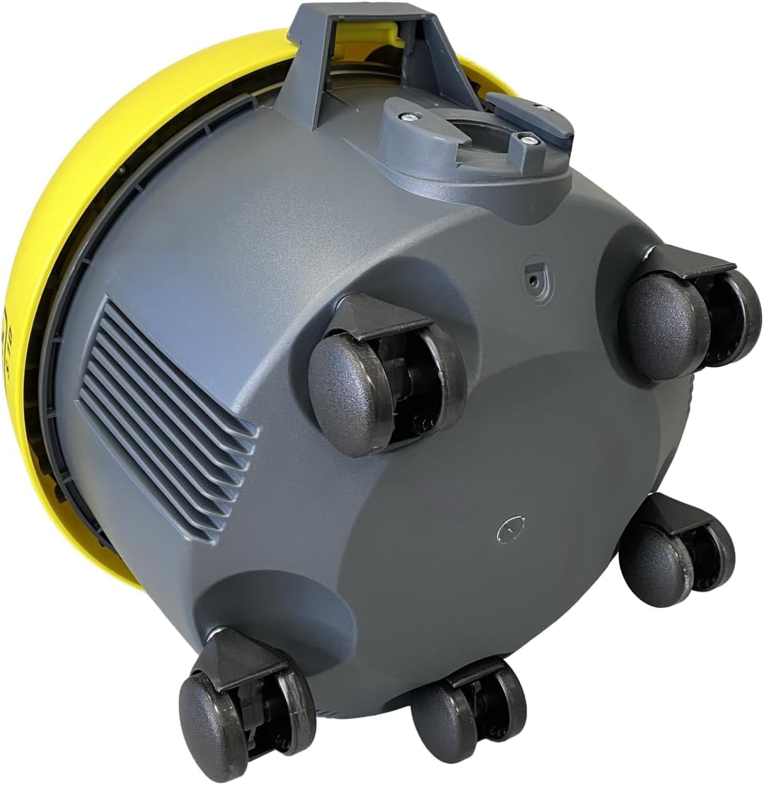 - Ein professioneller Trockenstaubsauger mit fünf Lenkrollen für einfache Manövrierbarkeit. Er verfügt über ein 10 Meter langes Netzkabel für maximale Reichweite und mühelosen Einsatz.