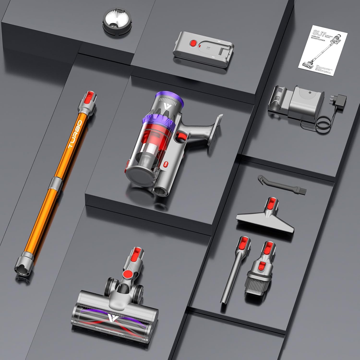 - 8*2500mAh Akku, bis zu 70 Minuten Laufzeit: Der SU7 Staubsauger Kabellos ist mit 8 Stück 2500mAh, 29,6V Hochleistungsakkus ausgestattet. Im Auto- und Eco-Modus beträgt die Akkulaufzeit bis zu 70 Minuten, im Max-Modus bis zu 20 Minuten. Legen Sie den