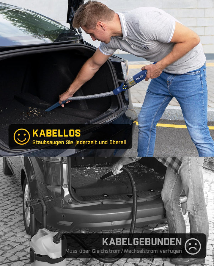 - Hinweis: Dieser Handstaubsauger ist kompakt und daher nicht zum Reinigen grosser Flächen geeignet. Er eignet sich zum Reinigen von Details im Autoinnenraum sowie zum Reinigen von Details im Innenbereich, von Bürotischen und Computertastaturstaub
