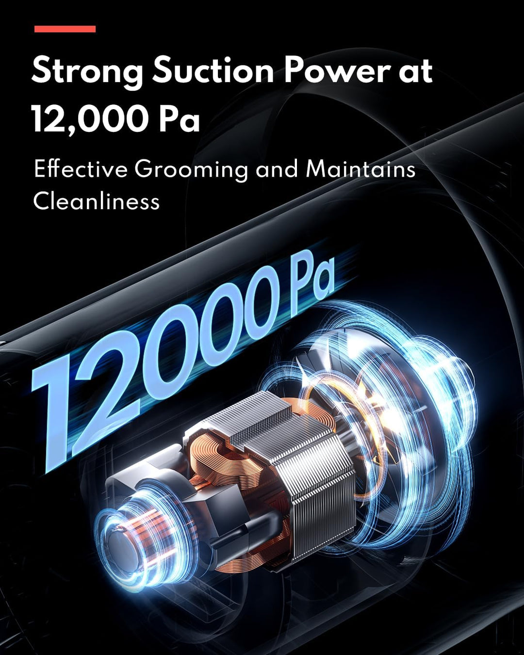 - 【12.000 Pa Hochleistungsfähigkeit】Der robuste Motor aus reinem Kupfer in unserem Staubsauger für Haustierhaare liefert eine vielversprechende Saugleistung von 12.000 Pa, die 99 % der losen Haare, Staub und Verschmutzungen während der Fellpflege