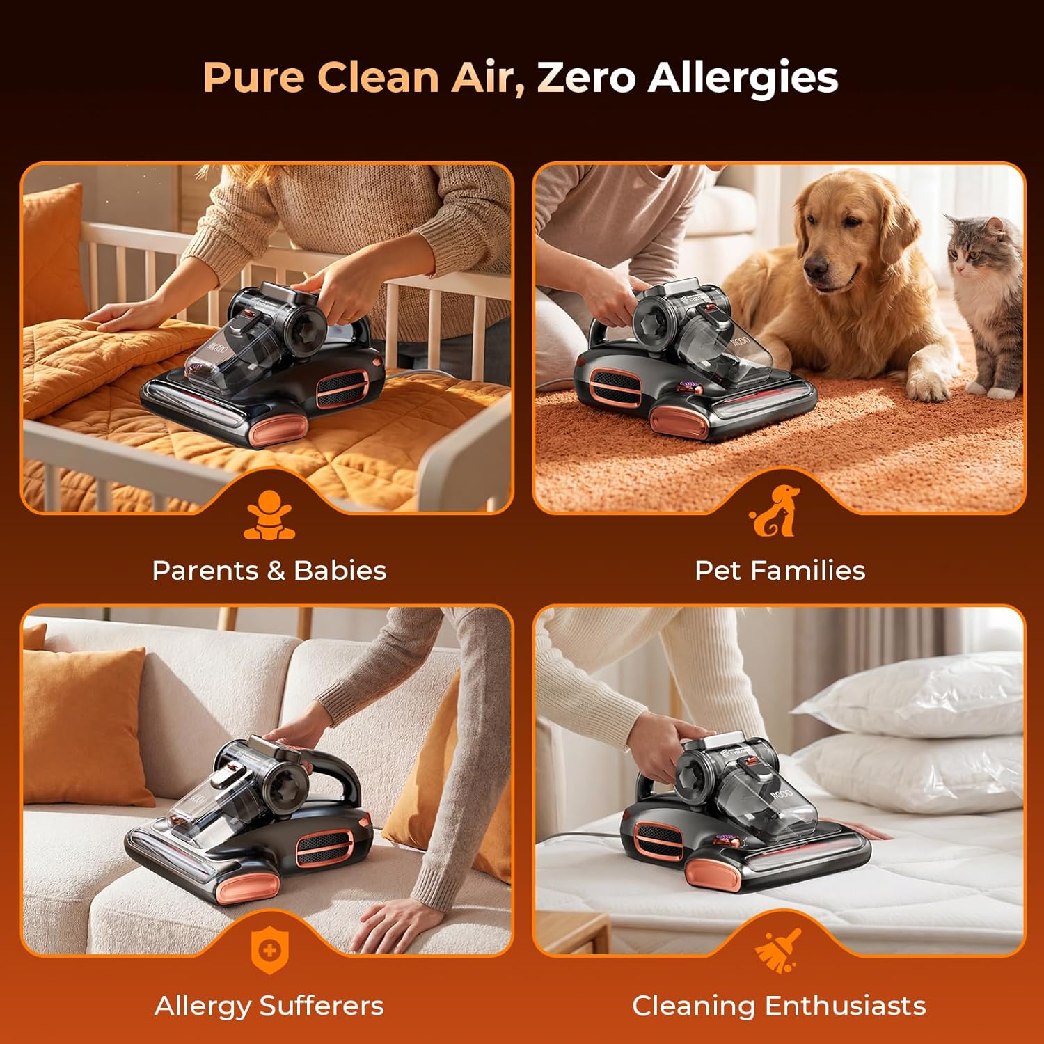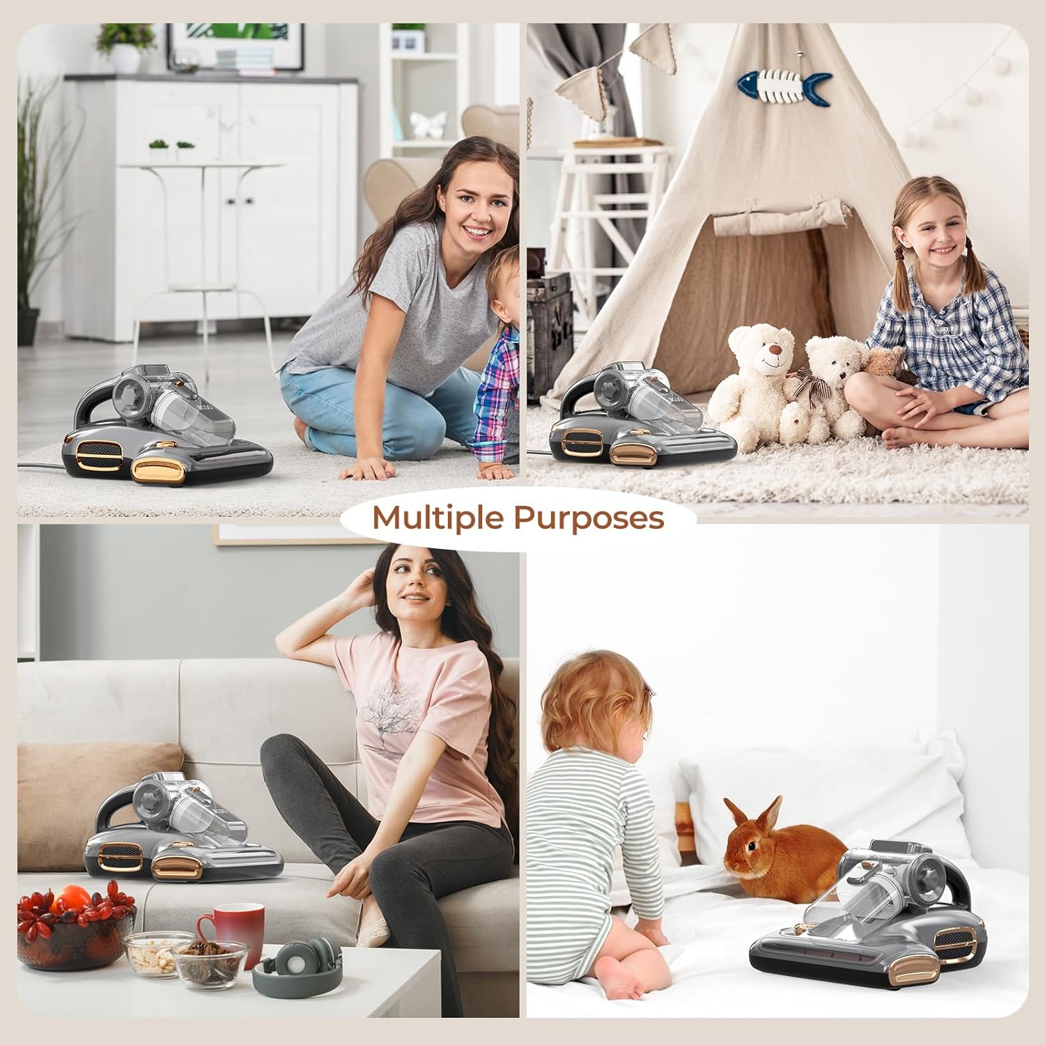 - Starke Leistung und Saugkraft : Mit 700 W und 15 Kpa Saugleistung kann der Milbenstaubsauger bis zu 99,9 % der Milben entfernen. Dank der Kombination aus UV-Licht und Vibration werden die Milben effektiv abgetötet und können anschliessend aufgesaugt