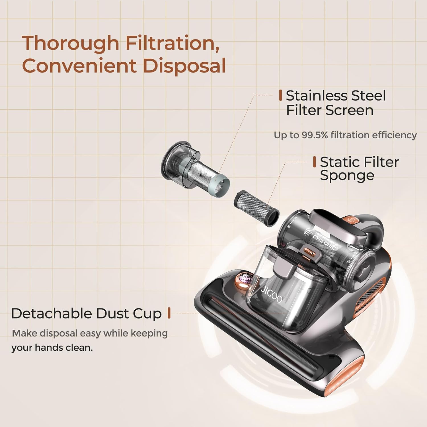 - Individueller Doppelbecher : Der JIGOO T600 Milbensauger für matratzen ist ein leistungsstarker Staubsauger, der speziell für die Entfernung von Hausstaubmilben entwickelt wurde. Die beiden Staubbehälter sind unabhängig voneinander konzipiert, um