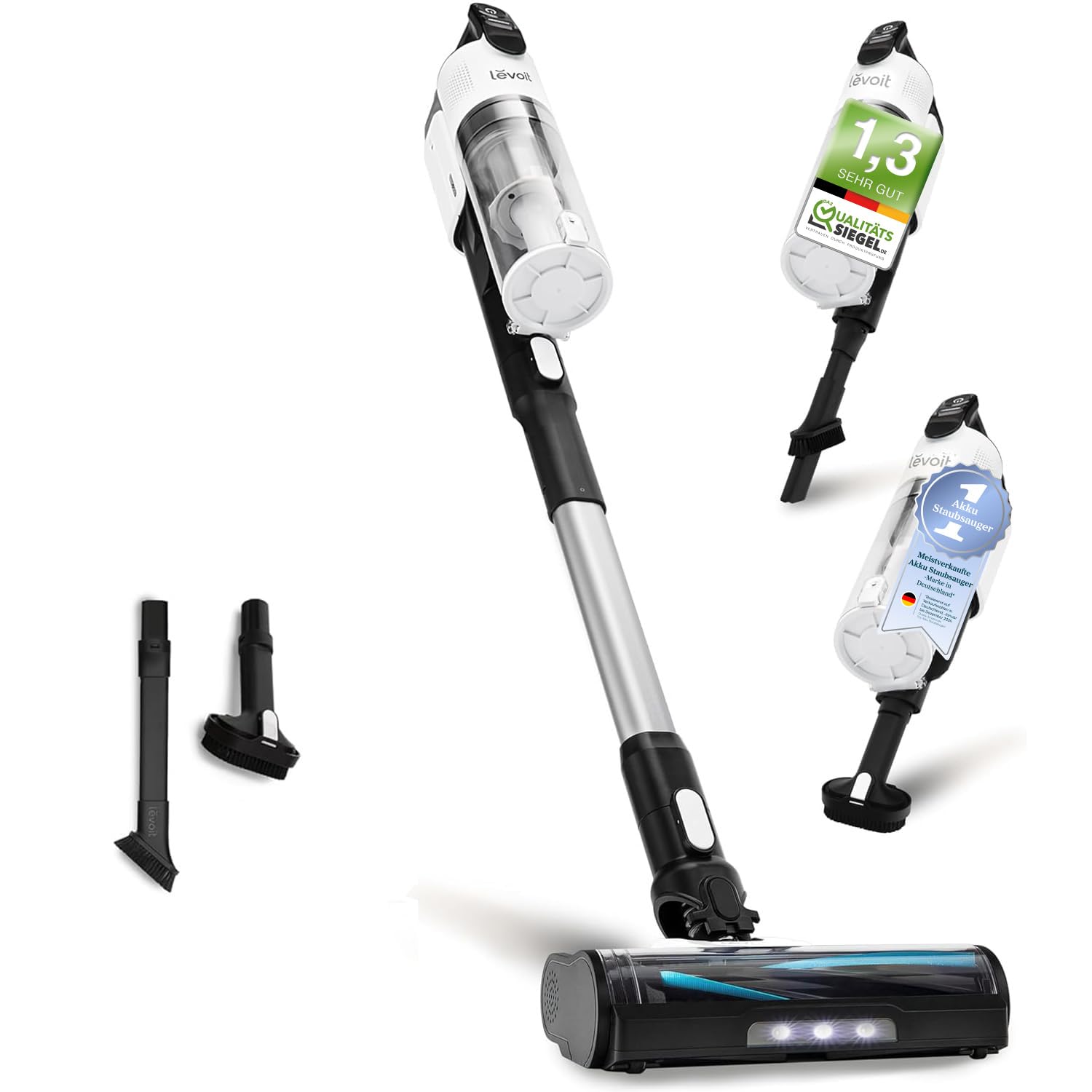 - Lieferumfang: 1 x Staubsaugergehäuse, 1x herausnehmbarer Akku, 1 x Ladegerät, 1x Langes Saugrohr, 1x Kurzes Saugrohr, 1x Bodensaugaufsatz mit Bürste und LED-Beleuchtung, 1 x 2-in-1 Polsterbürste, 1 x 2-in-1 Möbelbürste1 x Wandhalterung inkl.