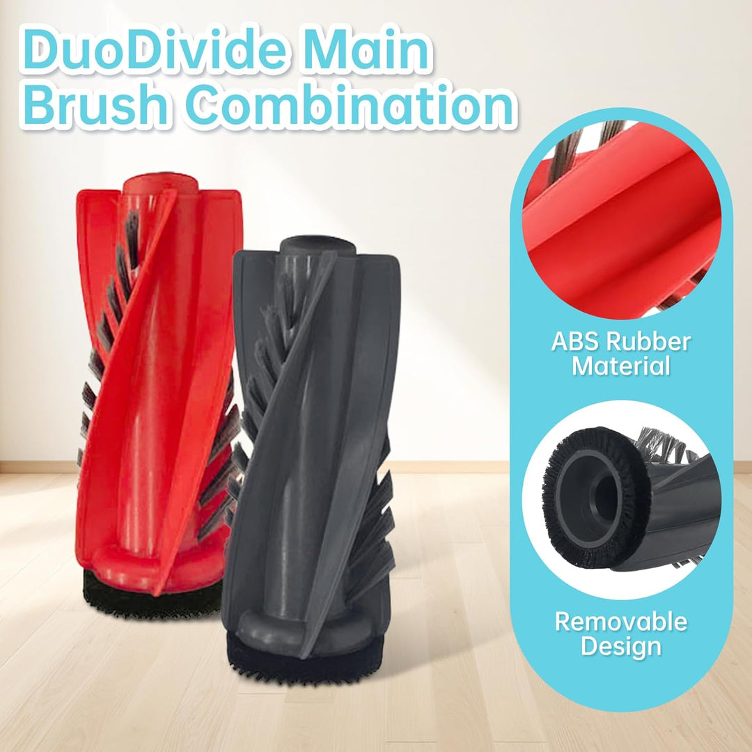 - Haupt-/Seitenbürsten: Die Walzenbürste reicht tief in Teppiche, um Schmutz, Tierhaare und andere Rückstände von harten Oberflächen gründlich zu entfernen. Die Seitenbürste kann tief in Ecken und Kanten reichen, um Staub zu entfernen
