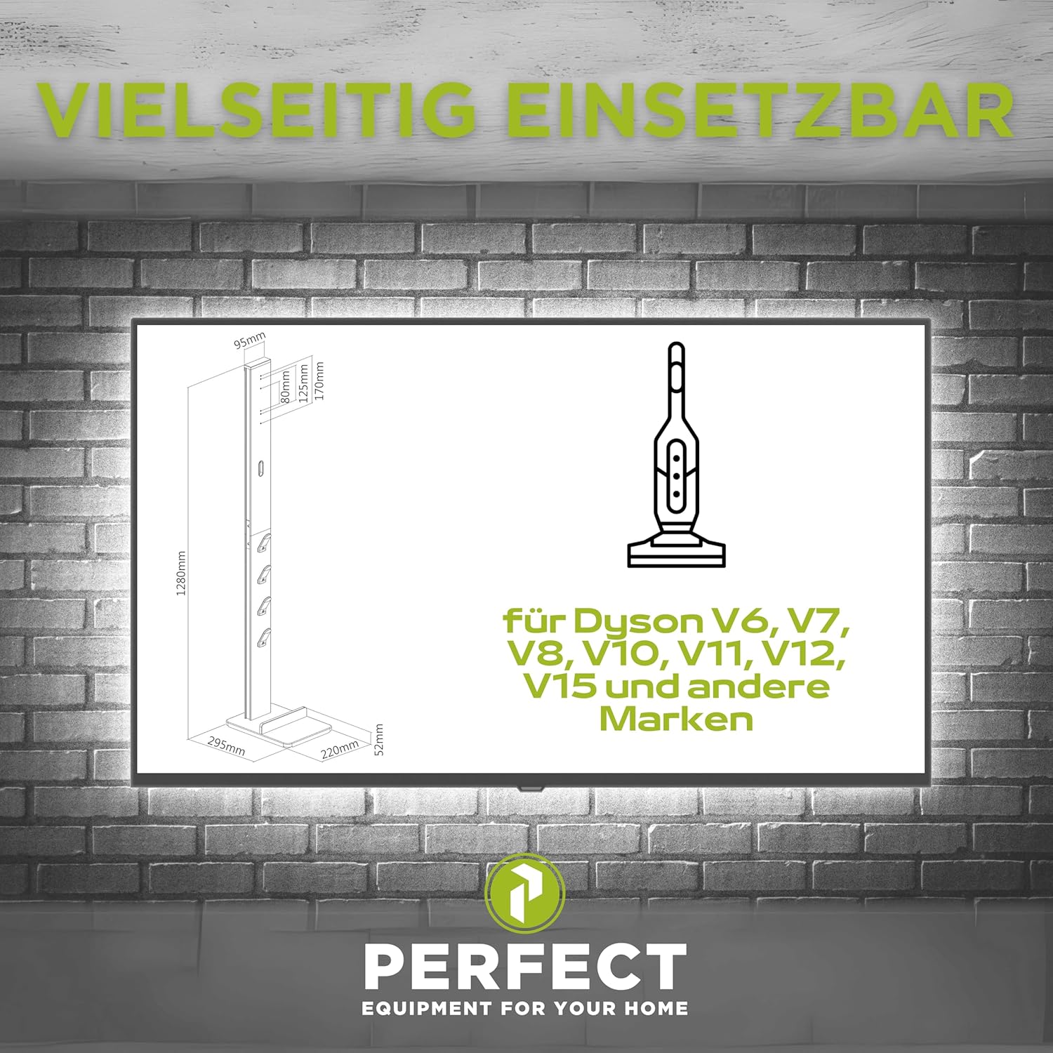 - PerfectHD Ständer / Standfuss für folgende Dyson Staubsauger Modelle: Dyson V6 Pro, Dyson V7 Pro, Dyson V7 Fluffy, Dyson V8 Fluffy, Dyson V8 Absolute, Dyson Cyclone V10 Fluffy, Dyson Cyclone V10 Absolute, Dyson Cyclone V10 Total Clean, Dyson V11 Torque
