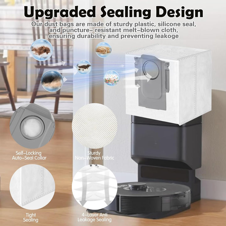 - Staubbeutel mit Hoher Kapazität: Der Q5 Max+ Staubbeutel hat ein Fassungsvermögen von bis zu 3,6 Litern und ist vierlagig aufgebaut. Die Struktur aus Vliesstoff, Meltblown-Gewebe und Meltblown-Gewebe schliesst Schmutz und Staub zuverlässig ein. Der
