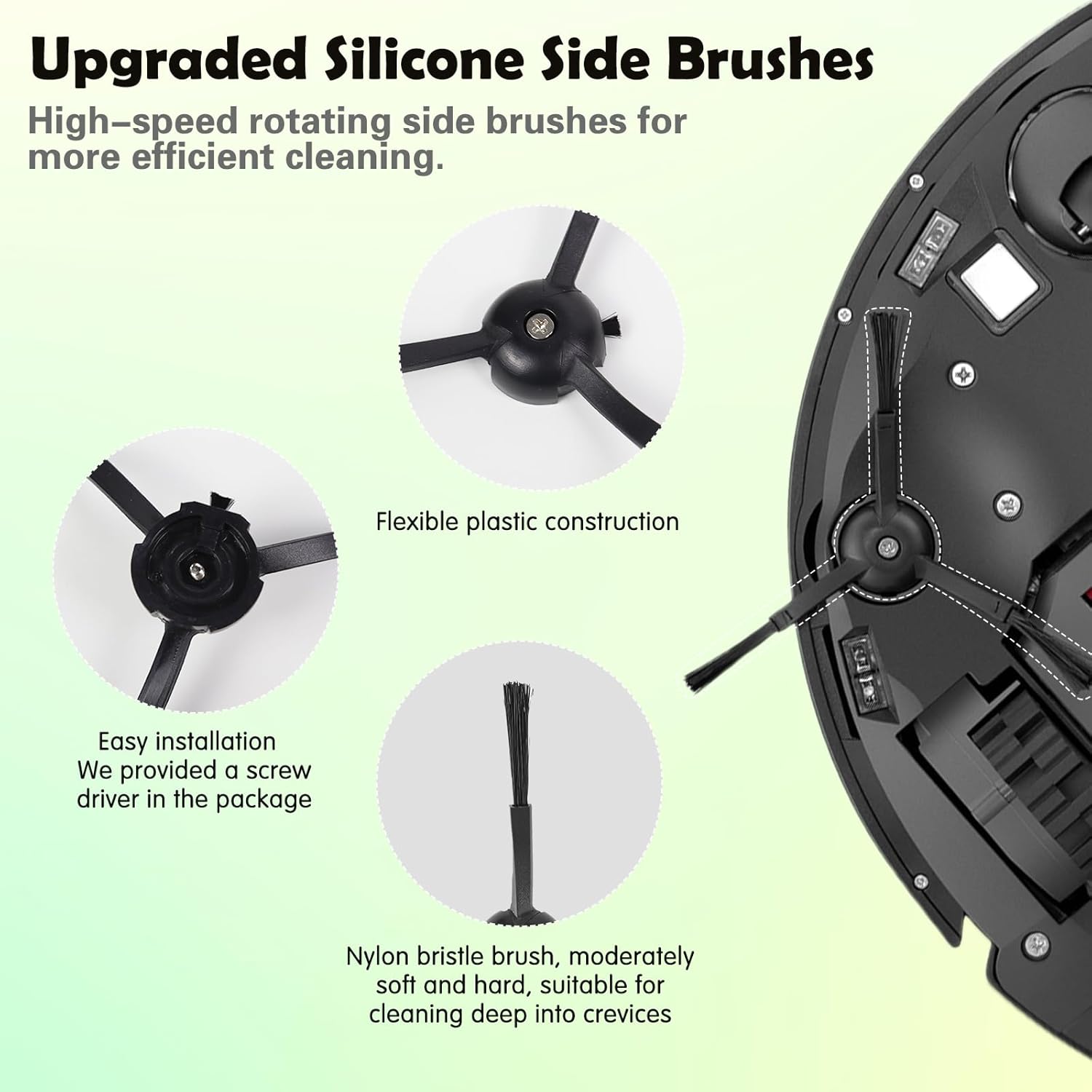- Doppelspiral-Gummibürste und Nylon-Seitenbürste: Die Hauptbürsten bestehen aus hochwertigem Gummi,das stark und langlebig ist und den Boden nicht beschädigt.Sie verbessern die Reinigungsfähigkeiten des Roboters erheblich und sammeln effektiv