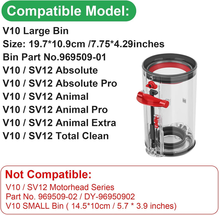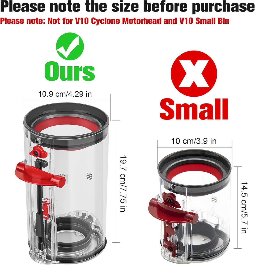 - 🏠 Kompatibles Modell: Der Staubbehälte ist nur für Dyson V10 SV12 ersatzteil Staubsauger. Paket beinhaltet: 1* Behälter .
