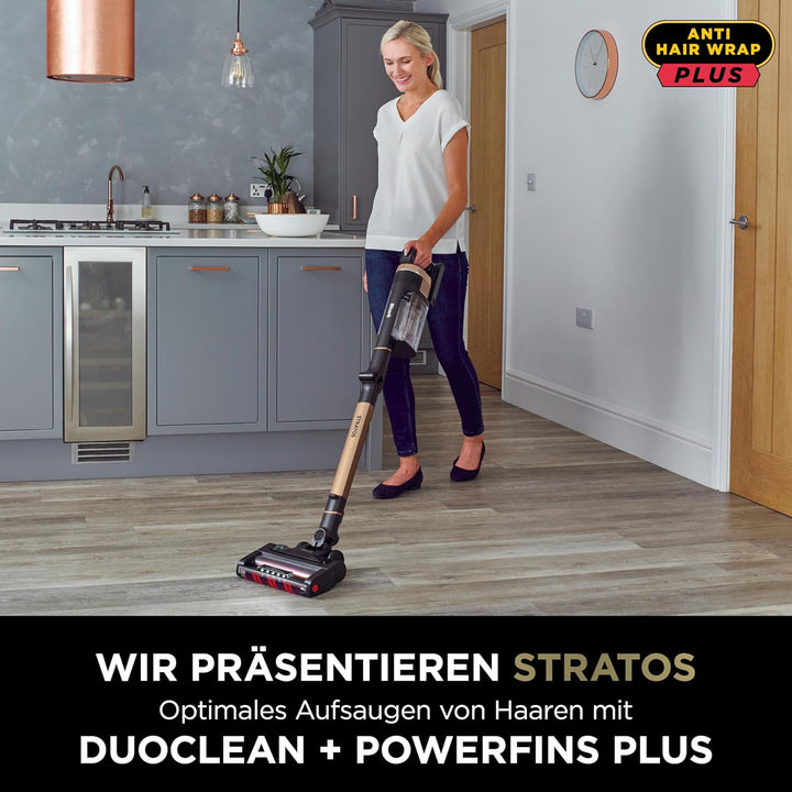 - ENTHÄLT: Kabelloser Staubsauger Shark Stratos (EU-Stecker), 1 Akku & Ladestation, Car Kit, Haustier-, Fugen- & Multi-Oberflächen-Aufsatz, Anti-Allergen-Bürste, Tasche. Gewicht 3,97 kg. Farbe Kupfer & Schwarz