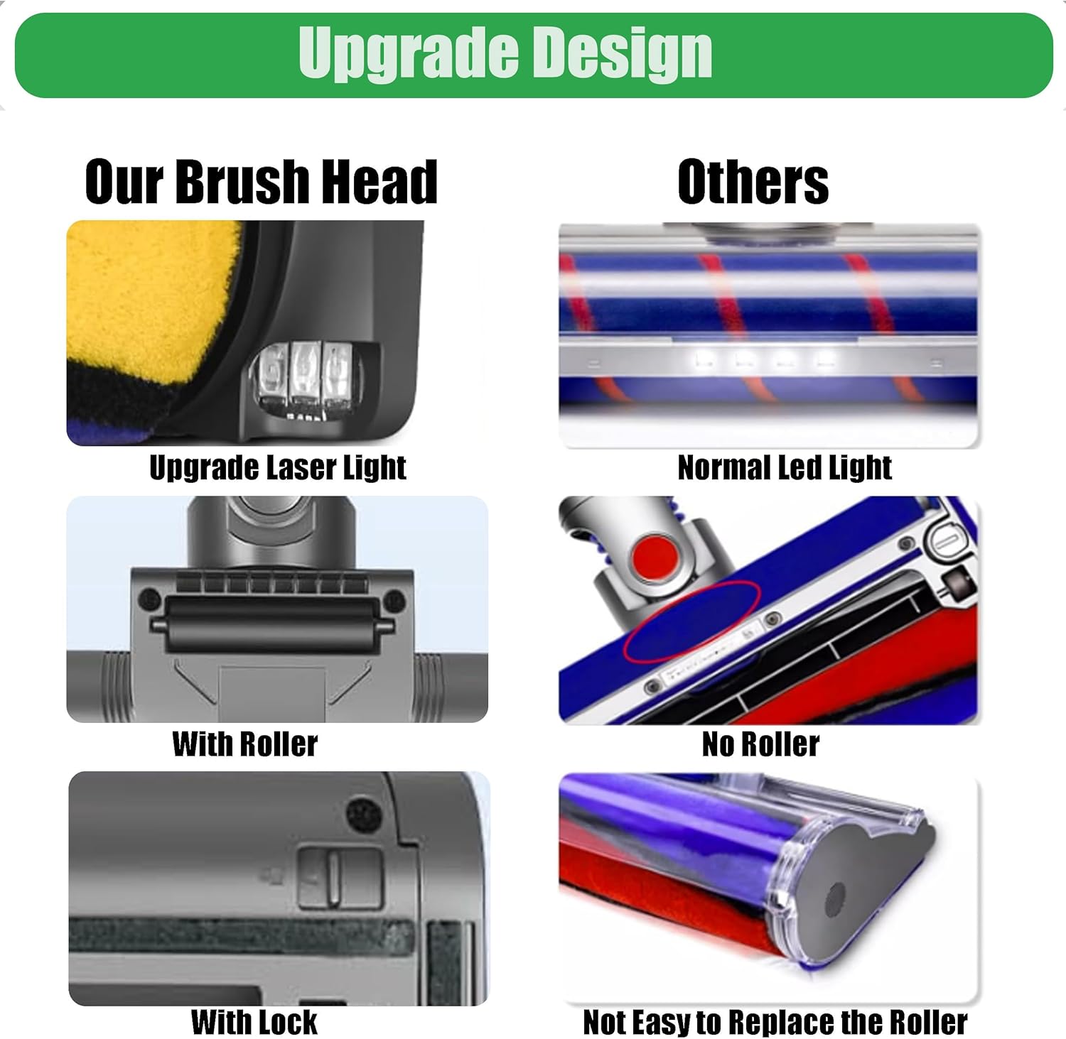 - Bürste für den Boden: Diese ersatzbürste für Dyson ist perfekt für die Reinigung von Hartböden, wie Vinyl, Fliesen, Hart, Holz, Laminat und Marmorböden. Und ersatzteile bürstenkopf mit ihrer starken Saugkraft Kann hartnäckige Flecken schneller