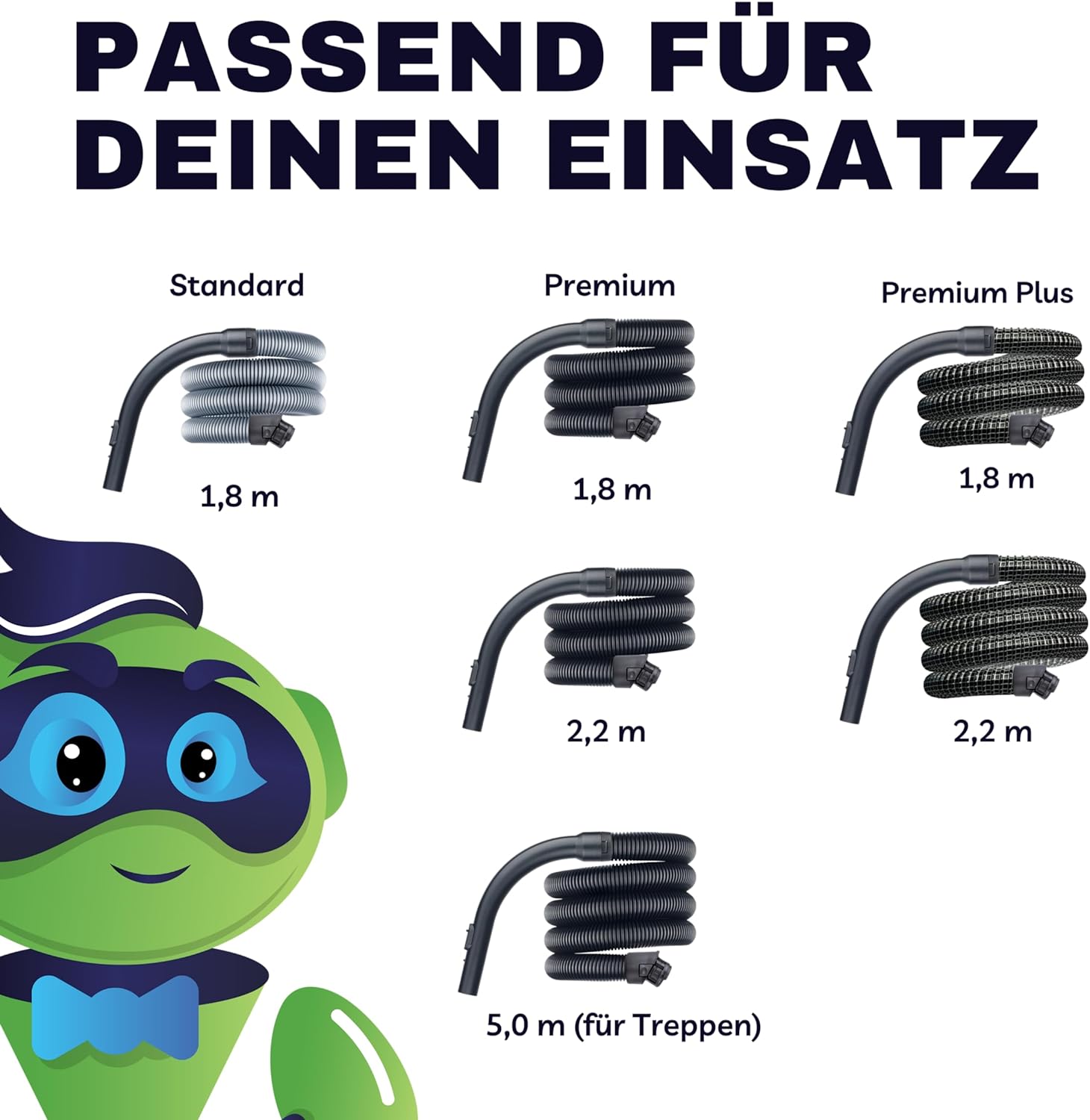 - ✔ SPÜRE DEN UNTERSCHIED - SAFE`N CLEAN Schläuche als Aufwertung für dein Gerät! Erweitere den Aktionsradius deines Staubsaugers mit unseren 2,2m Schläuchen oder mach das Schleppen deines Gerätes über Treppen hinweg mittels des 5m Schlauches