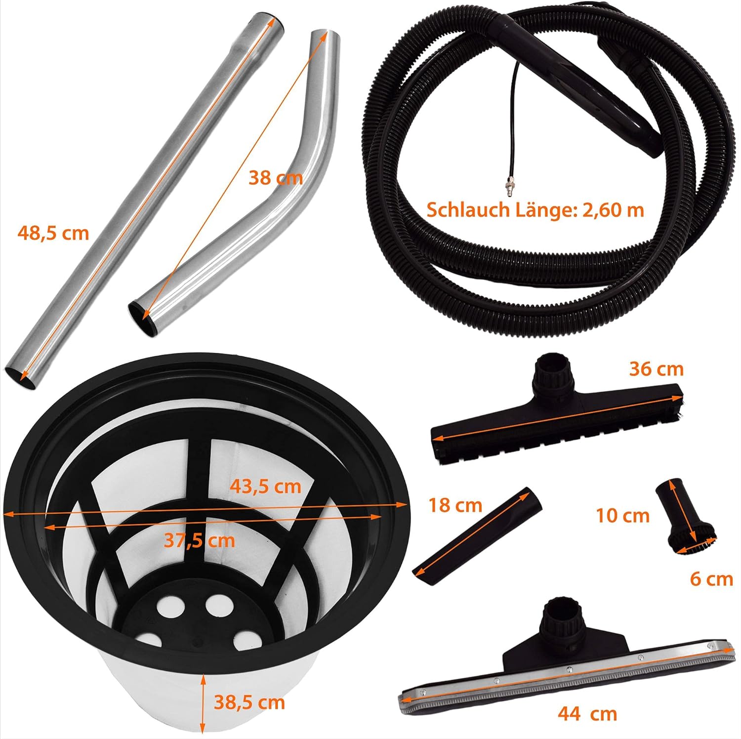 - Der Lieferumfang umfasst viele Düsen und Aufsätze, die keinen Wunsch zur Reinigung offen lassen Gewicht: 21 kg, Saugschlauch: 2,5 Meter, Leistung: 2000 Watt, Kapazität Tank: 60 Liter