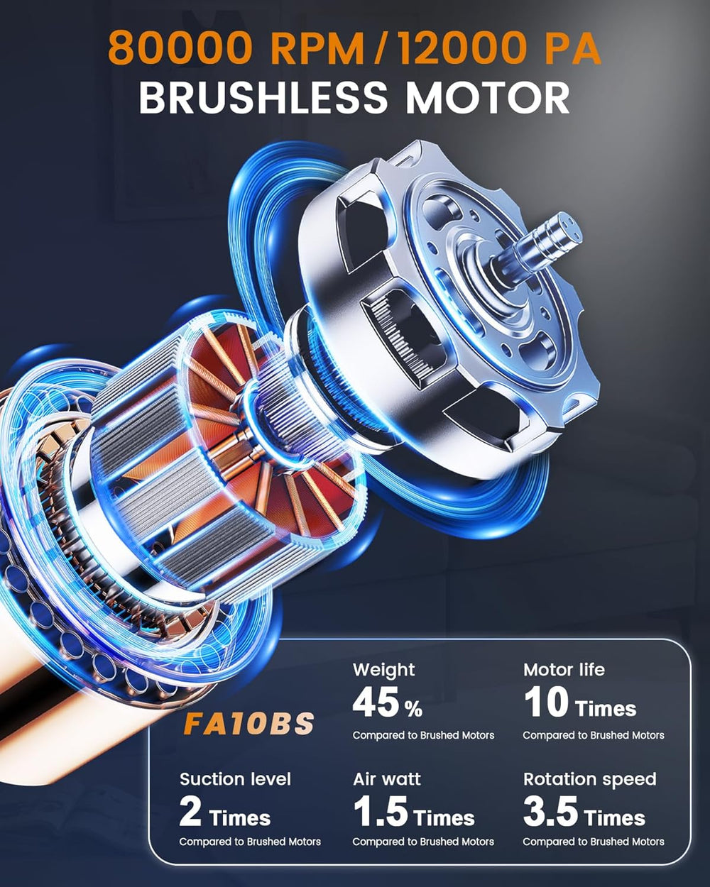 - 12000PA STARKE SAUGUNG: Handstaubsauger mit verbessertem bürstenlosen Motor, Saugleistung bis zu 12000 PA. Reduziert gleichzeitig Lärm und Störungen anderer und reduziert effektiv den Verschleiss während des Gebrauchs, was zu einer längeren