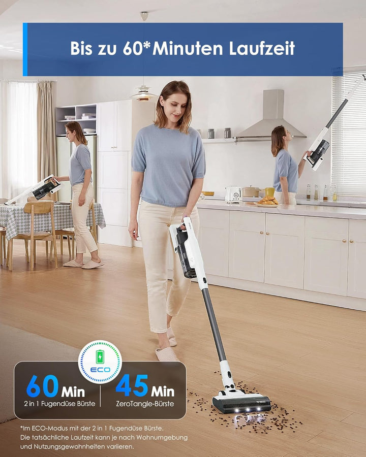 - 【Bis zu 60 Minuten Laufzeit】Der kabellose Stabstaubsauger hat eine Akkulaufzeit von bis zu 60 Minuten, damitdu mit einer einzigen Ladung das ganze Haus reinigen kannst.