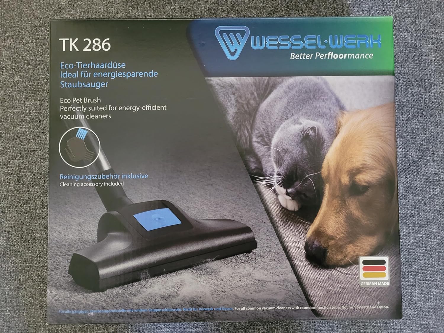 - Ideal für Energiesparsauger: Kraftvoll und effizient! Die Tierhaar-Turbodüse ist speziell für energiesparende Staubsauger unter 600 Watt entwickelt. Dank einer innovativen Turbinentechnologie, die perfekt auf die geringe Wattleistung der Staubsauger abgestimmt ist, reinigt TK 286 Teppichböden zuverlässig und gründlich