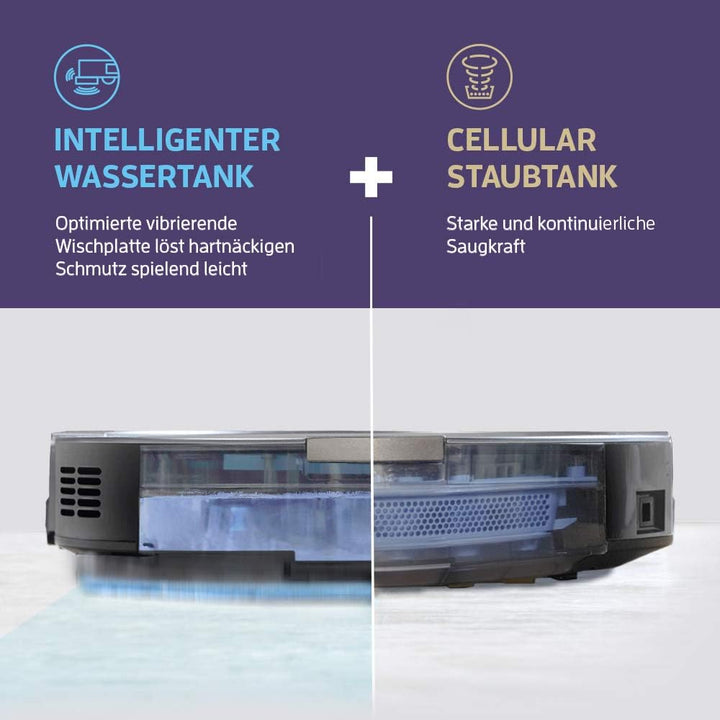 - Aktive Wischfunktion: Der 300ml Wassertank mit pulsierender Wischplatte bewegt das Mikrofasertuch aktiv über den Boden, um auch festsitzenden Schmutz zu lösen