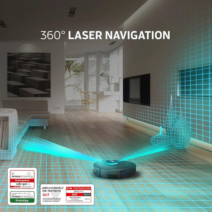 - Einfache Bedienung: Der ZACO A10 Staubroboter kann per Fernbedienung, App, und SmartHome Sprachsteuerung (Alexa, Google Home) bedient werden.