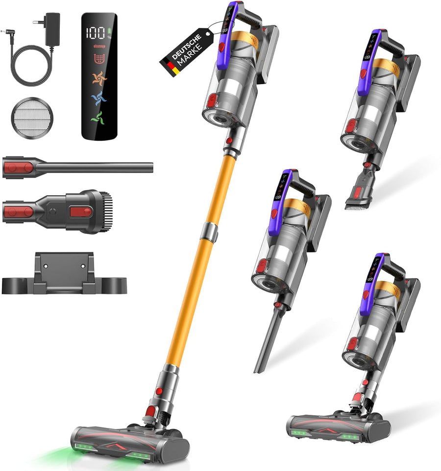 Akku Staubsauger, 58000Pa/550W/65Mins Staubsauger Kabellos mit LED Display und Anti Tangle Bürste, 1