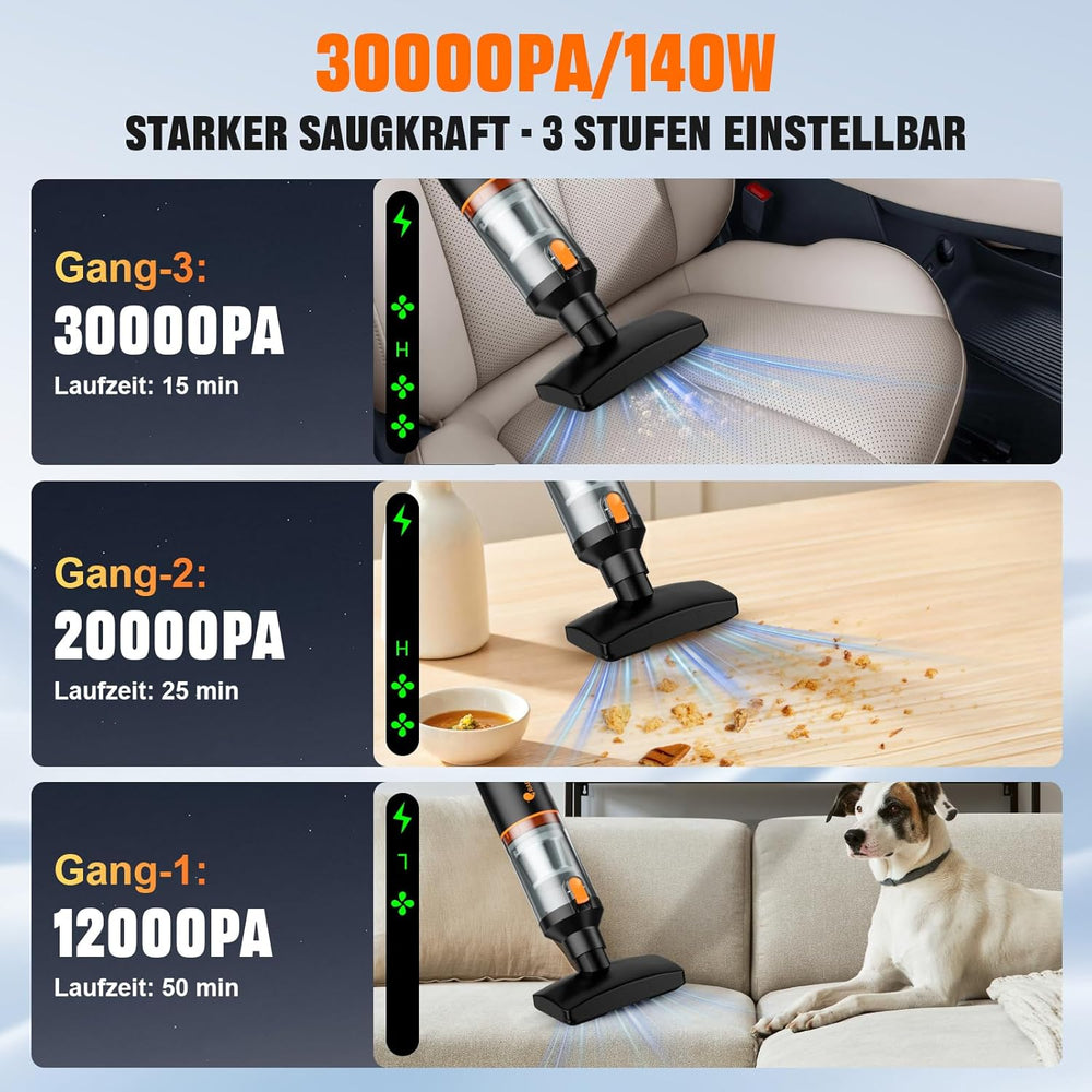 RABIGALA Handstaubsauger Akku 4-in-1, 30000PA Auto Staubsauger Stark mit hoher Leistung, Autostaubsa