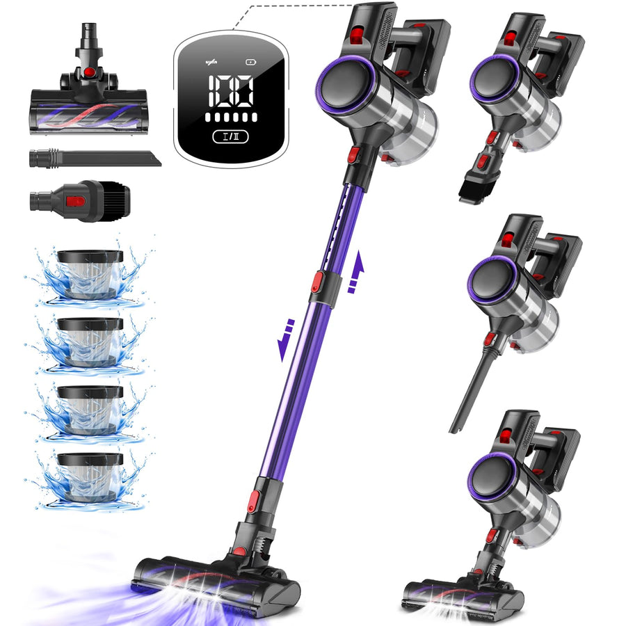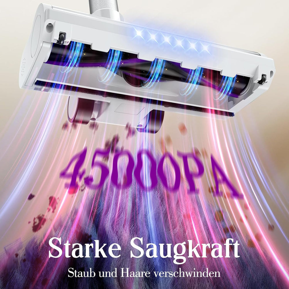 Akku Staubsauger 45000Pa, 60Min, nur 1,75 kg, 6-in-1 Staubsauger Kabellos mit Touchscreen, LED-Leuch