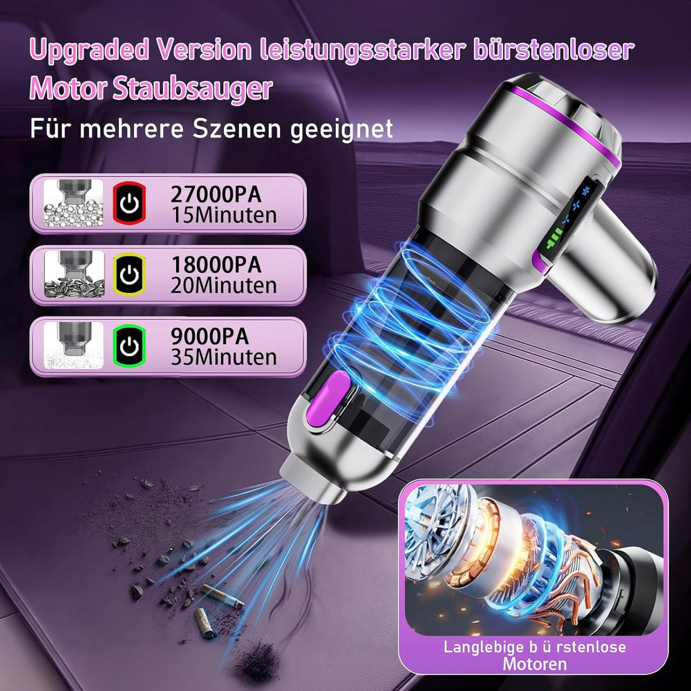 Handstaubsauger Akku, Autostaubsauger Kabellos 27000Pa Mini Staubsauger, Aufladbar Tragbar Leicht Au
