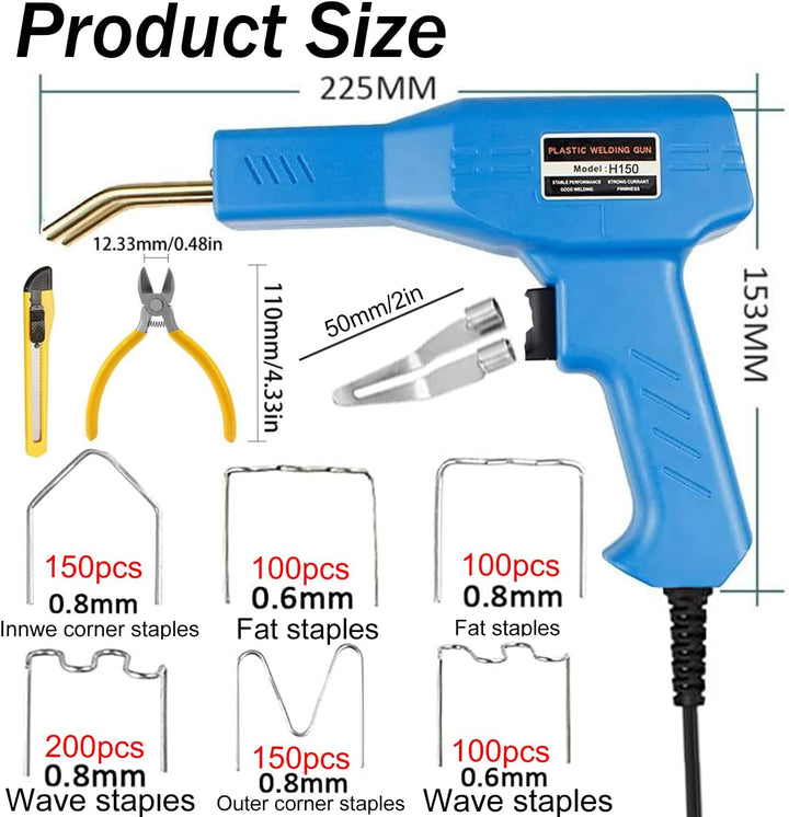 - đ§° ăBesseres Upgrade Zubehöră:Das 150W Kunststoffschweissset mit 800 heissen Clips ĂŒbersteigt die Anzahl der heissen Clips anderer Produkte auf dem Markt. Zwei KunststoffstĂ€be und ein Spatel arbeiten zusammen. Unsere WĂ€rmeklemmen bestehen aus