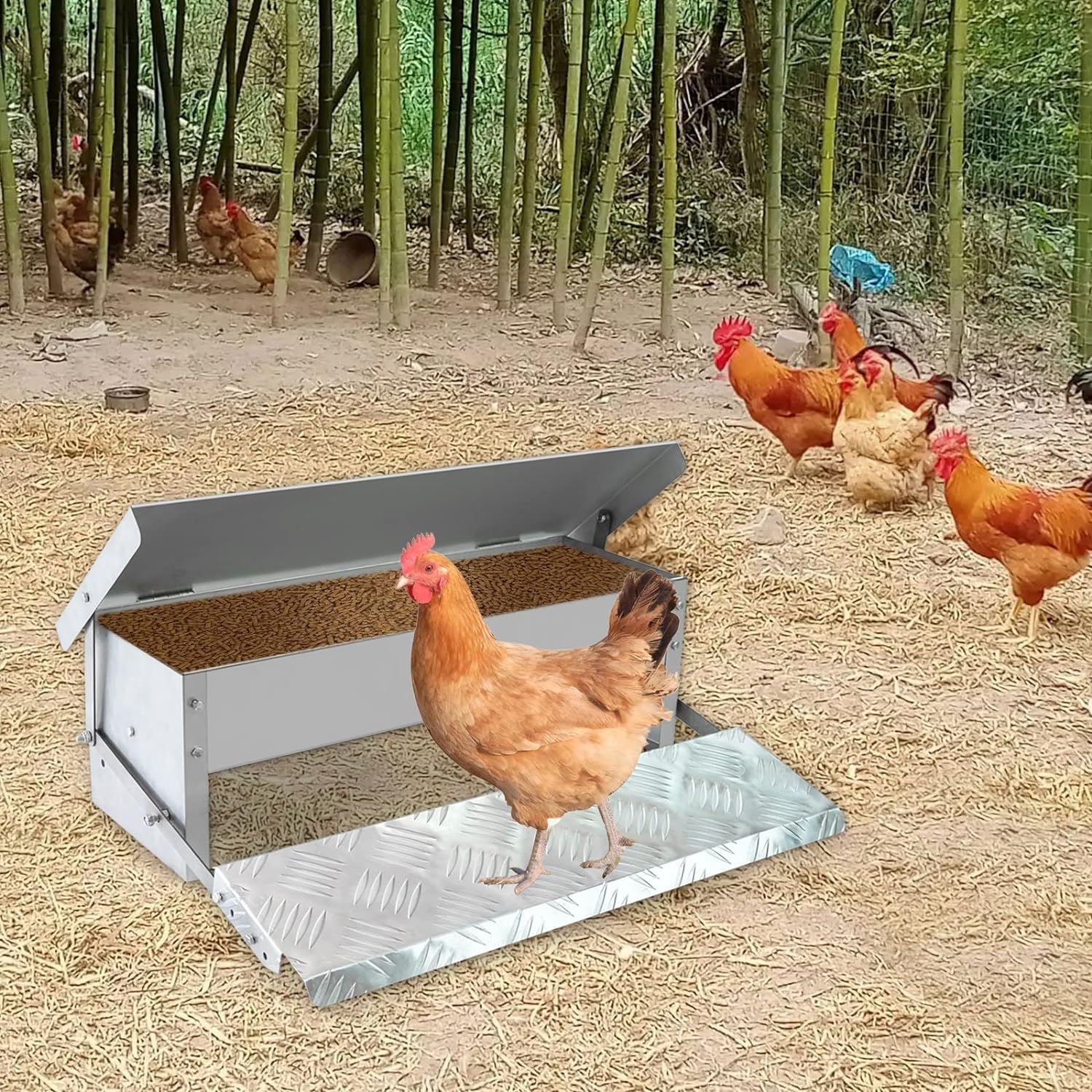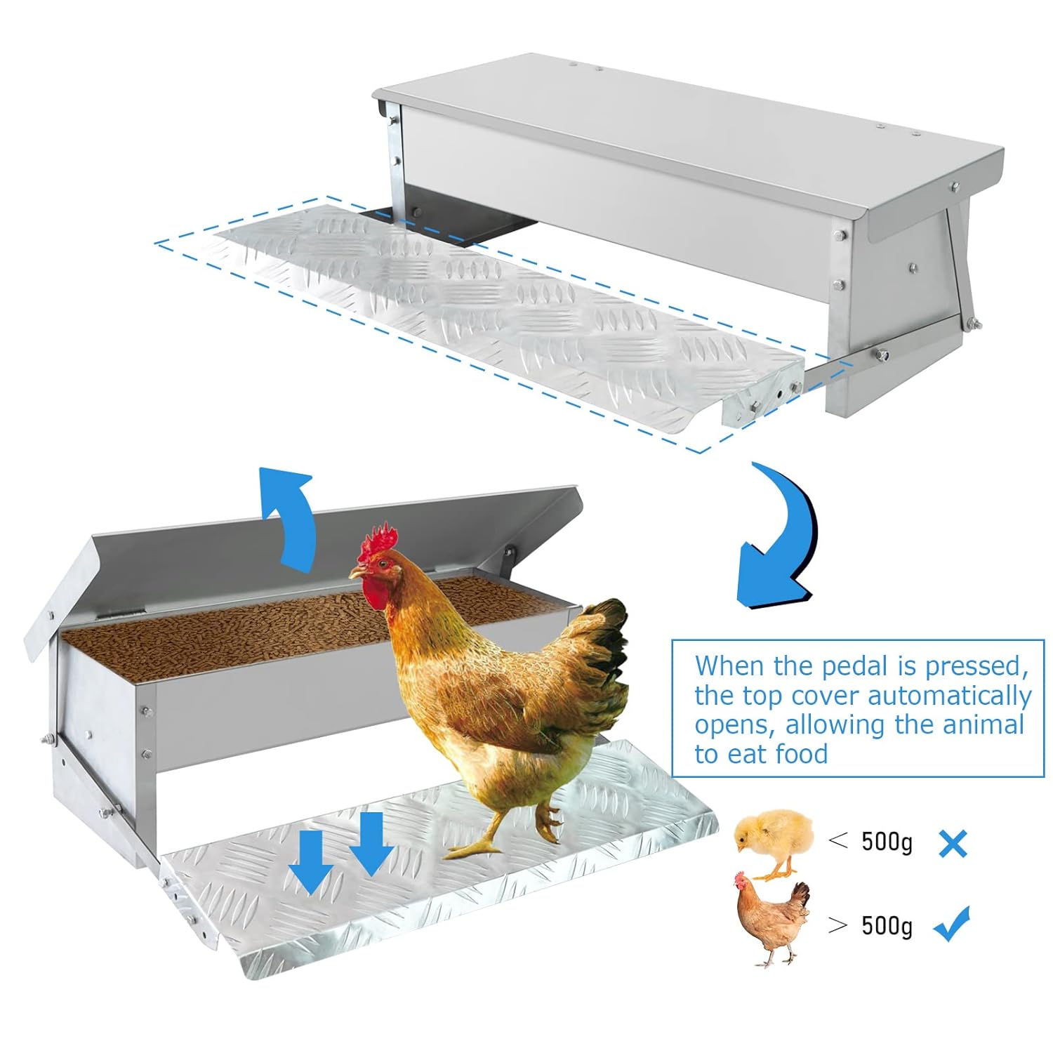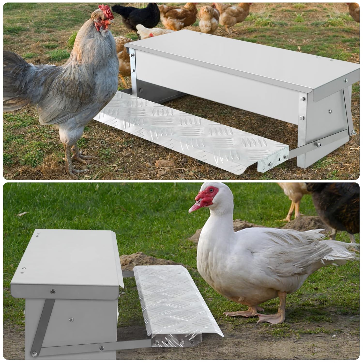 - ROBUST UND LANGLEBIG: Die Hühnerfütterung ist aus hochwertigem verzinktem (rostfreiem) Stahl und einer Aluminiumlegierung gefertigt, die für Haltbarkeit, Rostbeständigkeit und Langlebigkeit sorgt. Das automatische Profil soll verhindern, dass andere