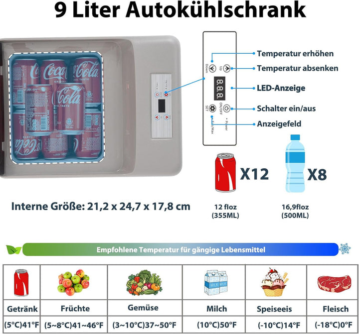 - LIGHTWEIGHT DURABLE DESIGN: Dieser Alpicool C9PT Portable Car Refrigerator hat ein kompaktes Fassungsvermögen von 9 Liter und ein leichtes Gehäuse mit einem Nettogewicht von 6,1kg, Frauen können auch leicht aufnehmen.