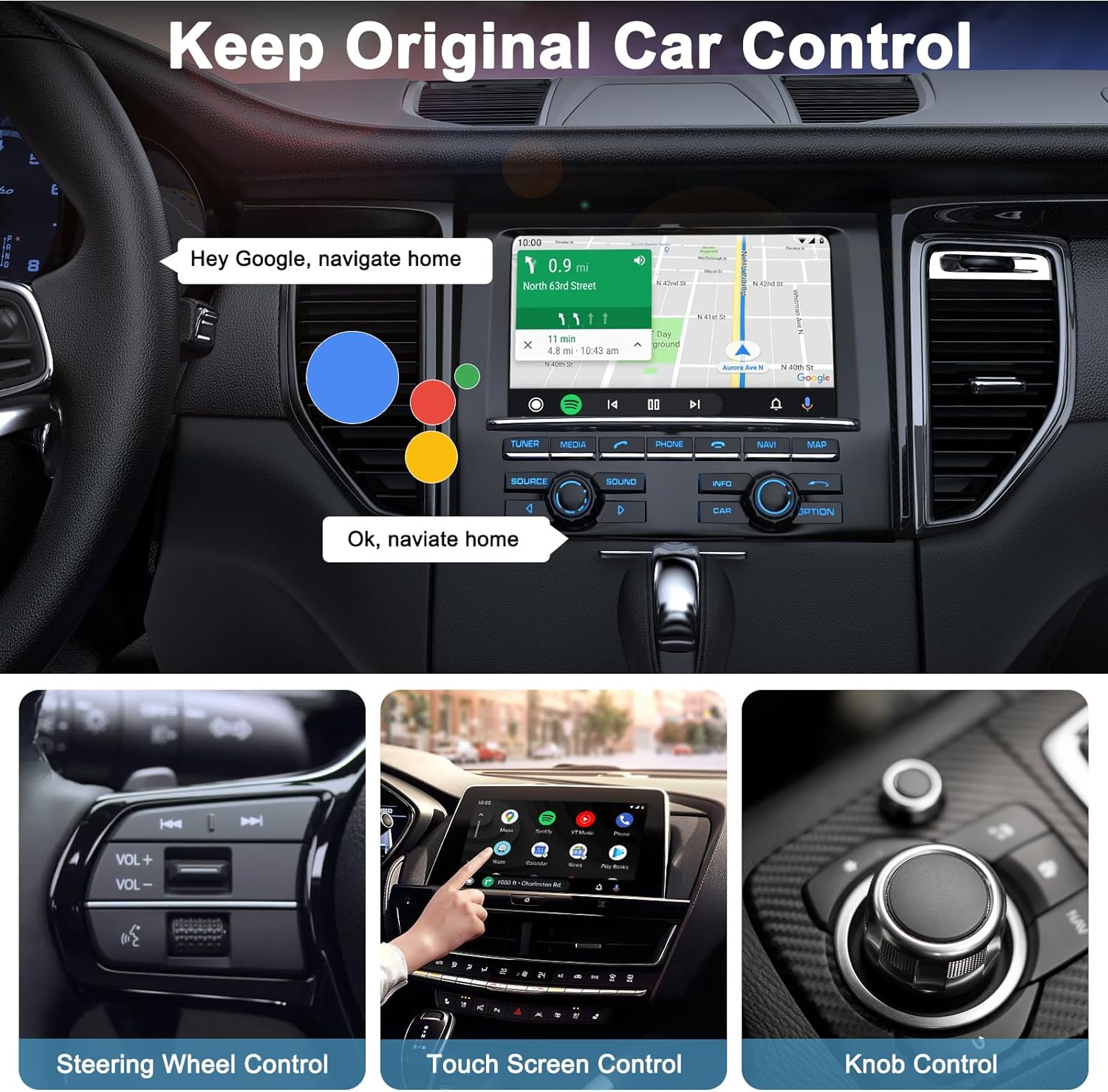 - [Werksfunktionen Bleiben] Die Wireless Android Adapter Kontinuität Fabrik ursprünglichen Auto Kontrollmethoden, können immer noch volle Android Auto Funktion mit Android Auto Wireless geniessen! Der zentrale Kontrollbildschirm, das Mikrofon, die