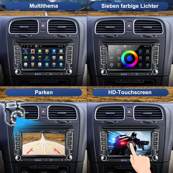 - 🚗 【Android 10.0 System-Autoradio für Volkswagen】1GB + 16GB Memory.Car Player Grösse: 220 (obere Breite) * 128 (Höhe) * 21 (untere Breite) mm. 7-Zoll-kapazitiver Touchscreen, praktische Seitentasten. Ultraklares Full-HD-Display. Mit zwei USB vorne, einem USB hinten (zwei zum Laden, einer zum Lesen von Daten). Cinch-Ausgangs-/Eingangsanschlüsse, Multi-Choice für die Medienwiedergabe.