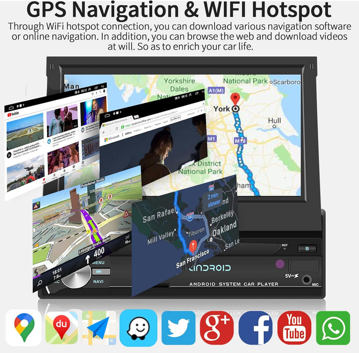 - 【Autoradio mit GPS-Navigation und WiFi】 Unterstützt viele Arten von Navigations-Apps. Sie können Offline-Karten oder Online-Karten verwenden. Eingebaute Offline-Karte von Europa, es gibt eine GPS-APK-Karte namens "Here wego", nachdem Sie WiFi oder Hotspot verbunden haben, können Sie kostenlose Karten herunterladen und Sie können Online-Videowiedergabe und Online-Kartennavigation geniessen.