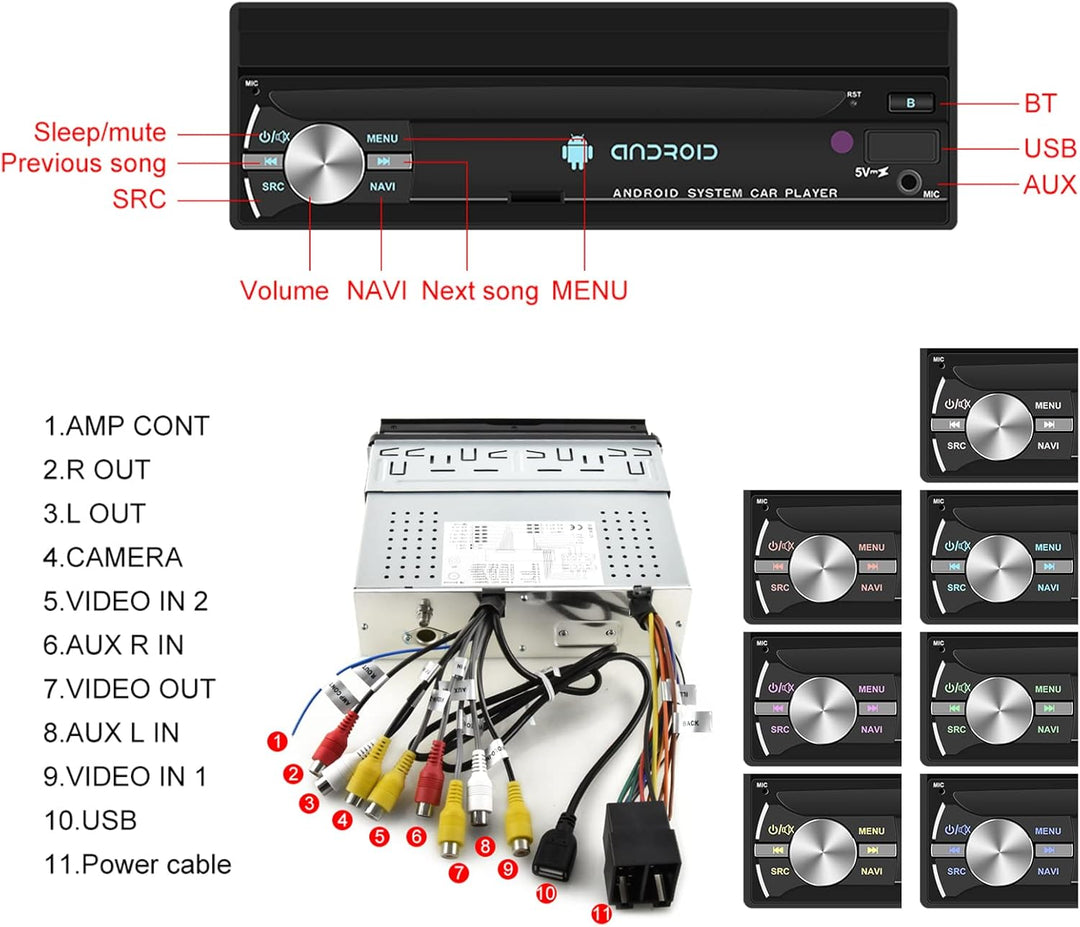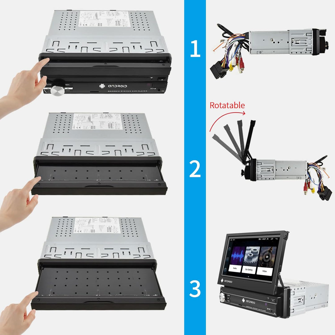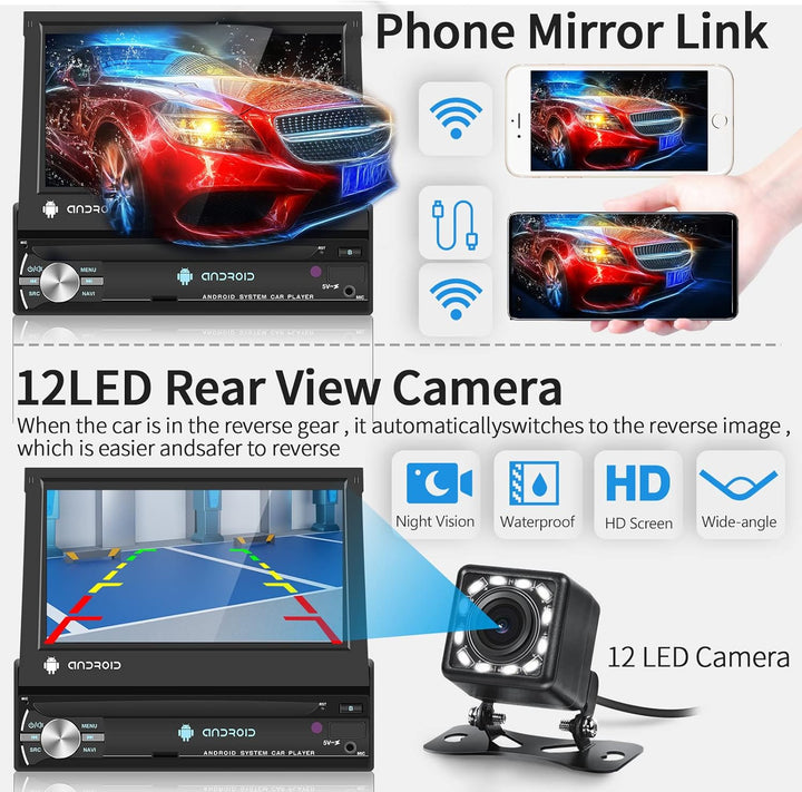- 【Phone Mirror Link- und Lenkradsteuerungsfunktion】 Das ausklappbare 7-Zoll-Touchscreen-Radio unterstützt Mirror-Link über USB-Kabel. Unterstützt Mirror Link für iOS Phones der Serie 5-8 (IOS 13.4 und niedriger) und Android-Telefone (Version 10.1 und niedriger). Ausserdem unterstützt das Autoradio die Lernfunktion der originalen Auto-Lenkradtasten, durch die Sie die Funktionen, die Sie benötigen, bequemer über das Lenkrad steuern können.